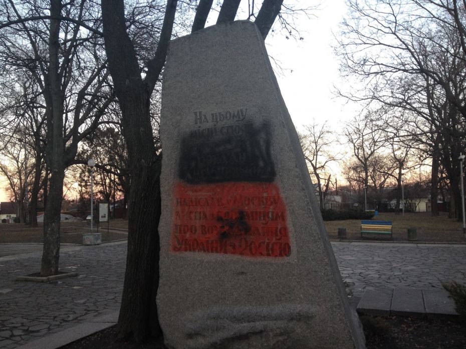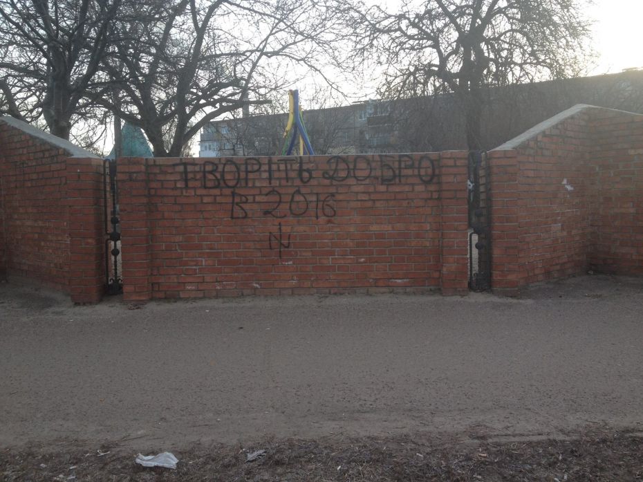 «Разом з погіршенням загальної криміногенної ситуації в країні не оминула ця доля і парки міста Черкаси. Майже щотижня, а іноді і кілька разів на тиждень, стаються прикрі випадки вандалізму. Деякі з них просто дурощі молоді, в якої багато вільного часу. Наприклад, флешмоб: намалюй знак #НЗ розкручений через соціальну мережу VK. Кілька таких знаків з'явилося в Долині троянд, сквері Богдана Хмельницького та інших парках. Або різні патріотичні заклики чи знаки. Я підтримую патріотів, сам люблю свою країну, але, як на мене, ці графіті більше вандалізм чим прояв патріотизму», - написав Микола Бондаренко.