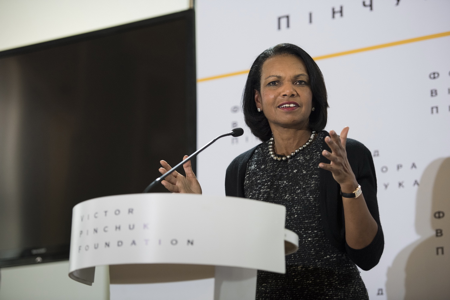 Колишній держсекретар США зазначила, що Україні варто рухатися шляхом розбудови демократії: «Демократія – це складна система, яку потрібно будувати впродовж тривалого часу. А ще це надзвичайно складна щоденна робота. Однак це єдина система, що поважає людську гідність».
