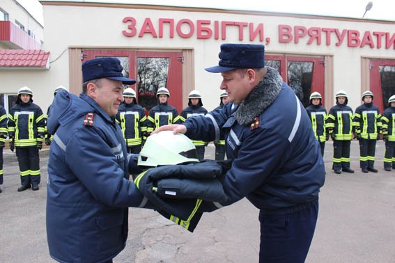 В офіційній обстановці на фасаді аварійно-рятувального загону спеціального призначення УДСНС у Черкаській області перший заступник начальника Управління ДСНС Сергій Озеран передав особовому складу підрозділу 20 комплектів сучасного бойового одягу німецького виробництва.