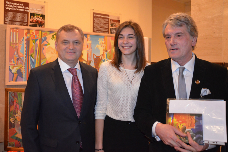 Ознайомилися з виставкою почесні гості урочистої академії, серед яких Президент України (2005-2010), голова наглядової ради ЧНУ Віктор Ющенко, Міністр освіти і науки України Сергій Квіт, голова Черкаської обласної державної адміністрації Юрій Ткаченко, голова Черкаської обласної ради Олександр Вельбівець, міський голова Анатолій Бондаренко, та інші.