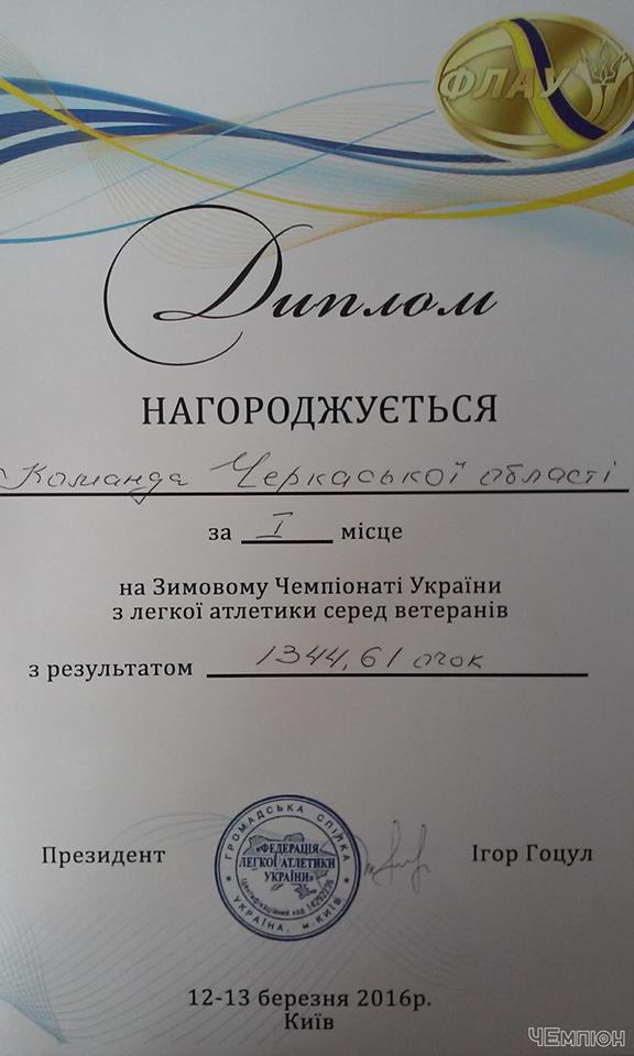 З «бронзовими» нагородами та першим загальнокомандним місцем повернулась команда Черкаської області із зимового чемпіонату України серед ветеранів, який 12-13 березня 2016 року приймала столиця.