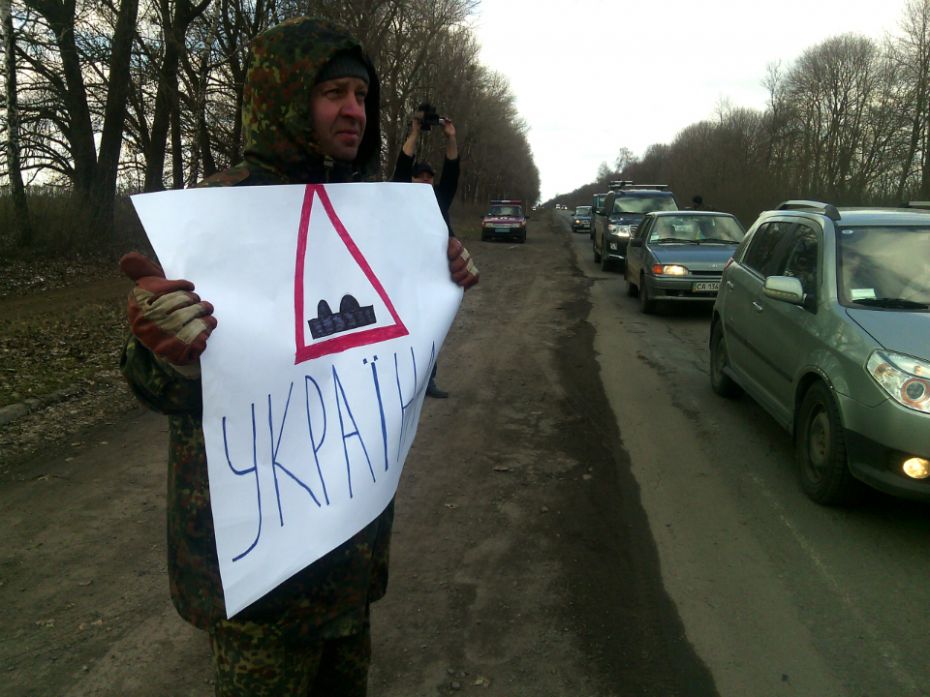 Палаючі шини, кілька десятків людей з плакатами і довжелезні черги з автомобілів - так протестували жителі Уманського і Христинівського районів, на пішохідному переході біля села Розсіжки, проти жахливого стану дороги Умань-Гайсин. Результатом акції протесту стали чотири наїзди на активістів, один протокол, виклик швидкої, 20 спалених шин і жодної реакції керівництва, як Уманського так і Христинівського районів.