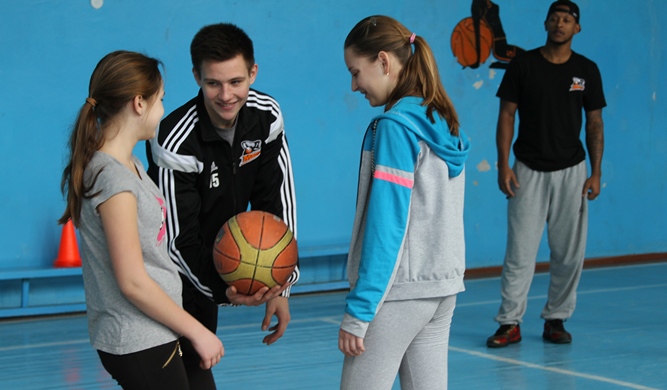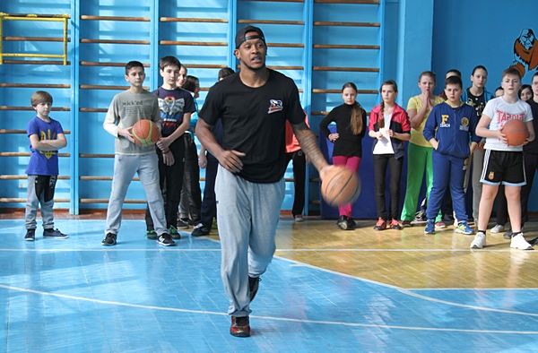 Максим Мірошніченко не вперше бере участь у майстер-класі, тому з самого початку бере ініціативу у свої руки. Пробіжка, розтяжка, розминка. Школярі вперше взяли участь у розминці, яку практикують професійні баскетболісти. Далі – вправи та естафети. Ведення, передачі, контроль м’яча – всі ці компоненти учні виконували із баскетболістами. Клас поділили на кілька команд. Відповідно мотивація пройти естафету швидше була у всіх учнів!