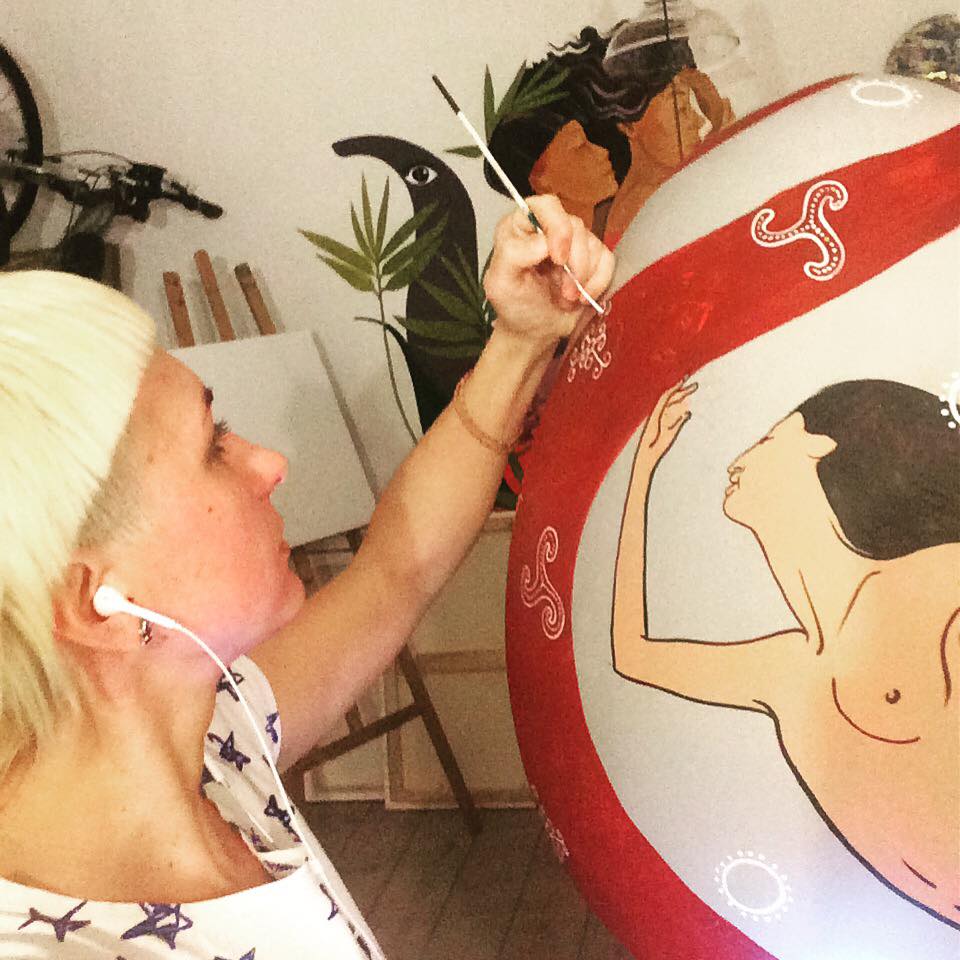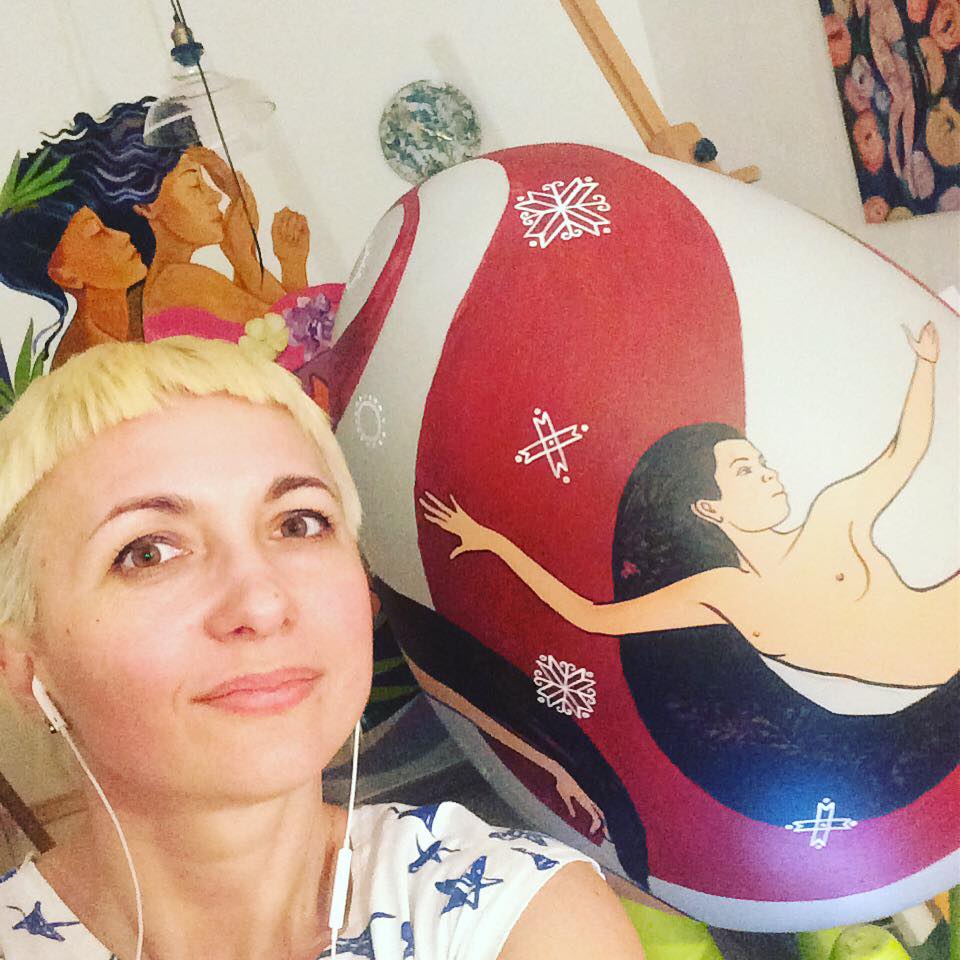 Розмальовувати яйця, як зазначають організатори, художники можуть або ж у традиційному, або ж в авторському стилі. Тож робота черкаської художниці буде дуже вирізнятися серед інших, адже на своїй велетенській писанці Тетяна Черевань зображає оголену жінку, музику та танець.