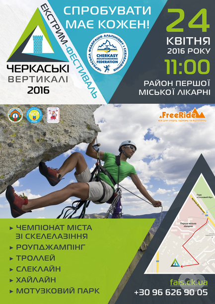Фестиваль екстриму «Черкаські вертикалі-2016» відбудеться у квітні і об’єднає цілий ряд екстремальних видів спорту та розваг. Про це пише «Громче».