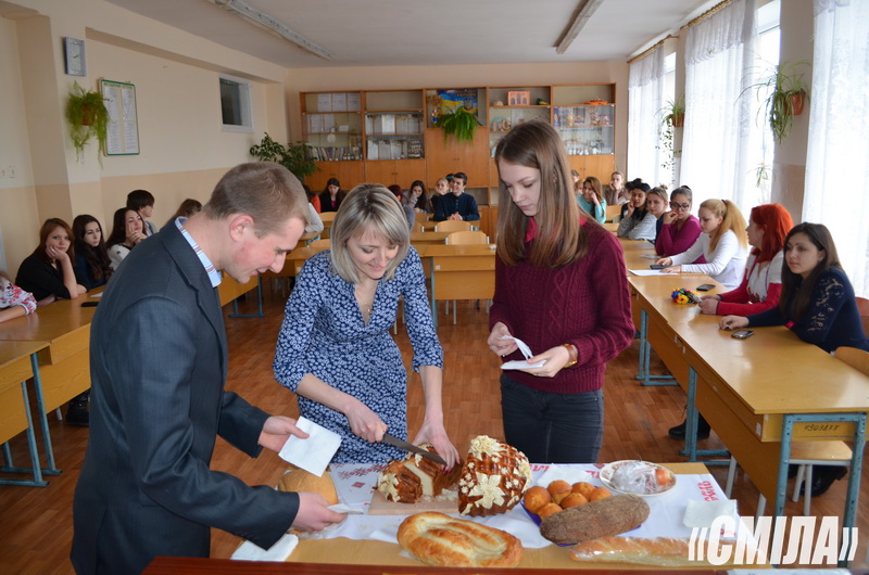 У Смілянському коледжі харчових технологій НУХТ під час тижня комісії фахових дисциплін технологічного циклу студенти спеціальності «Виробництво хліба, кондитерських, макаронних виробів та харчоконцентратів» групи ВХК-13 на чолі з класним керівником Дем’яненко О.В. провели цікаву виховну годину на тему: ”Хліб у різних народів”.