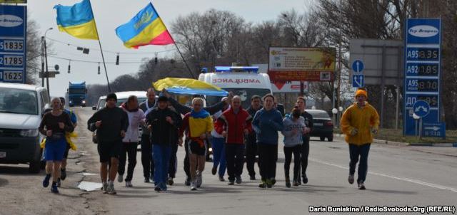 Зі Сміли до Черкас марафонці бігли розбитими дорогами. Вони кажуть, що втрапляли ногами у великі ями, однак мети не полишили.