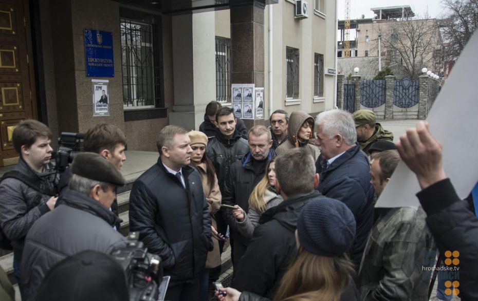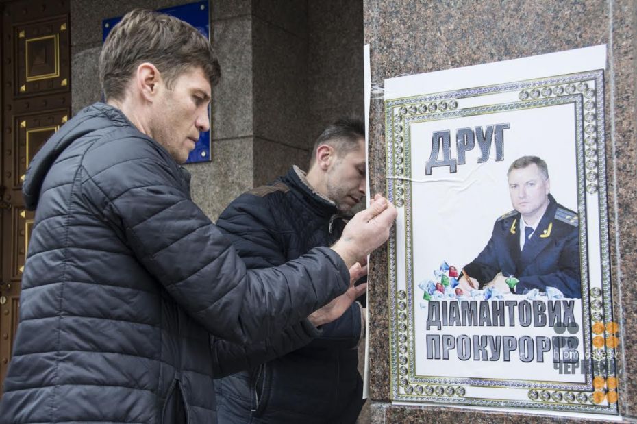 Також у мітингувальників були претензії до прокурора Черкаської області Сергія Овчаренка. Його звинуватили у підтримці «діамантових прокурорів» через те, що він підписав листа підтримки обласних прокурорів до Віктора Шокіна. Прокурор вийшов до мітингувальників і підтвердив, що підписував цього листа за власним бажанням: