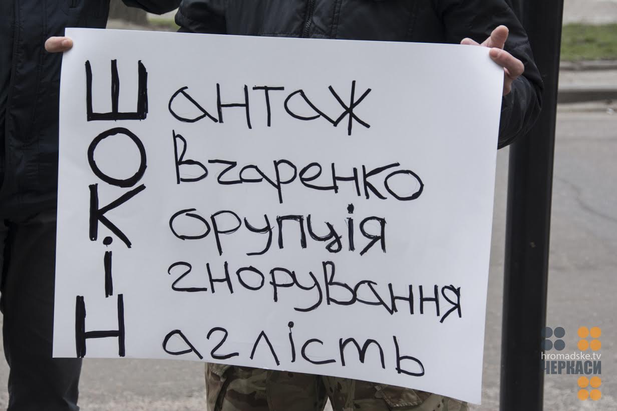 Півтора десятка активістів черкаського автомайдану підтримали всеукраїнську акцію проти генерального прокурора України Віктора Шокіна. Вони прийшли під стіни обласної прокуратури з вимогою його відставки. Про це повідомляє «Громадське. Черкаси».