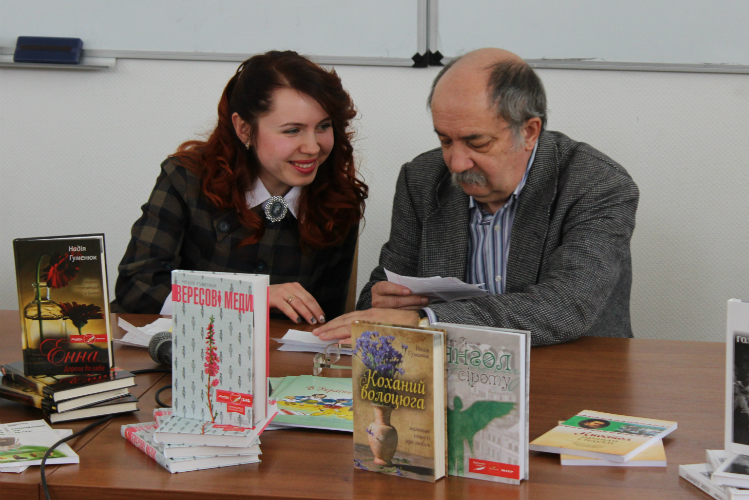 За фінансового сприяння профспілки університету на зустрічі було придбано два примірники книг авторів («Вересові меди» та «З сонцем за плечима») для наукової бібліотеки імені М. Максимовича.