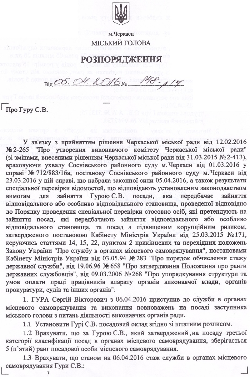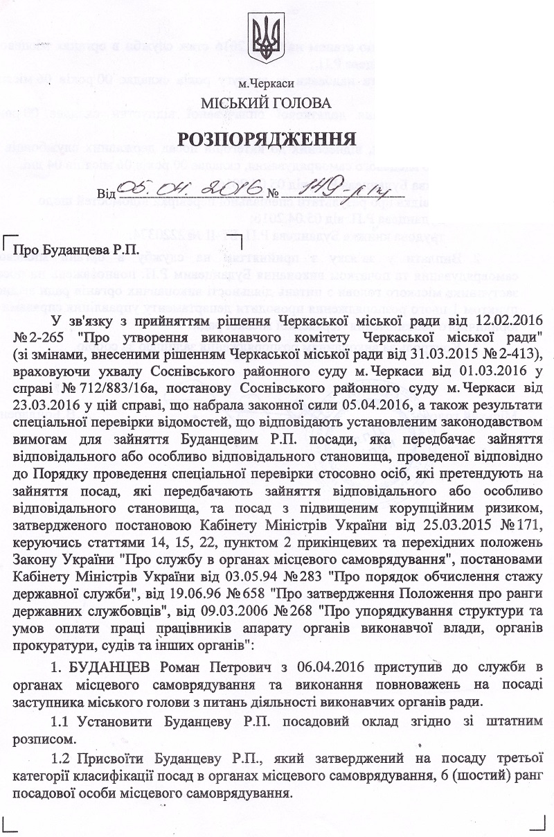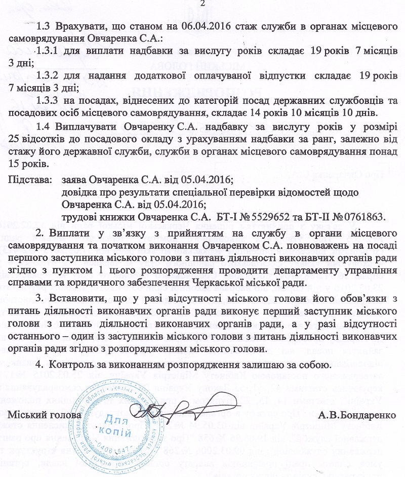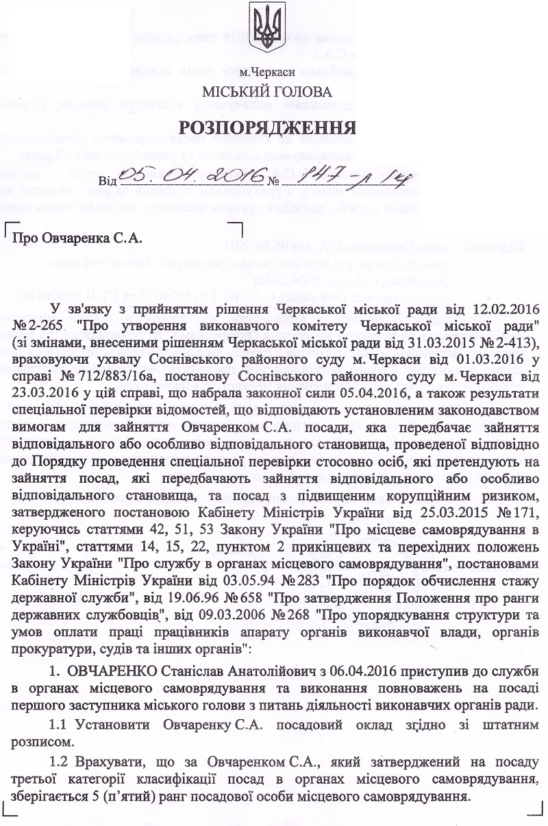 Із сьогоднішнього дня Станіслав Овчаренко приступив до служби в органах місцевого самоврядування та виконання повноважень на посаді першого заступника міського голови з питань діяльності виконавчих органів ради. Також із 6 квітня до служби в органах місцевого самоврядування та виконання повноважень на посадах заступників міського голови з питань діяльності виконавчих органів ради приступили: Сергій Гура, Геннадій Шевченко та Роман Буданцев.