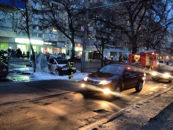 У центрі Черкас, на бульварі Шевченка, на парковці поруч із магазином «АТБ» учора, близько 19-30 загорілася каво-машина.