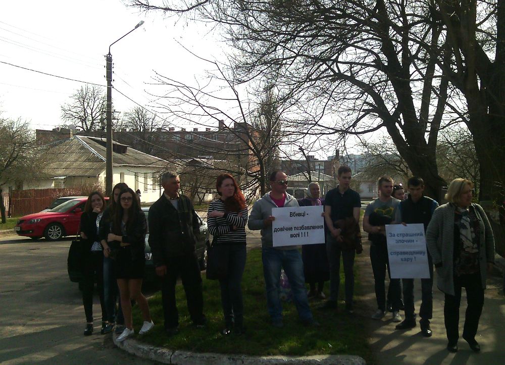 До початку судового засідання вигуки друзів і рідних у бік звинувачуваного і його родини не вщухали: «Вчителька, що виростила вбивцю, яке ти маєш право виховувати чужих дітей » - пролунало на адресу матері обвинувачуваного з уст бабусі Анни. Жінка постійно ховала очі від людей і камер запевняючи, що її син невинен.