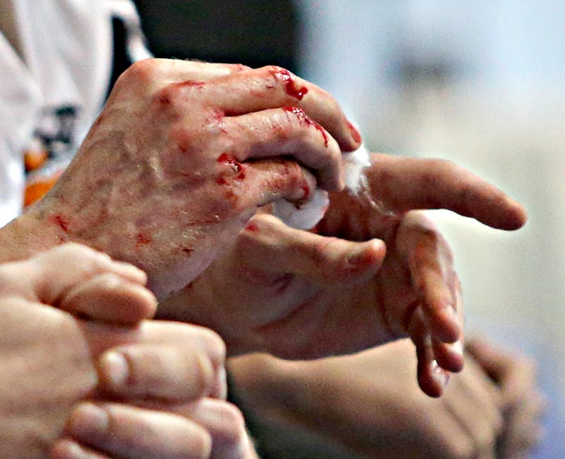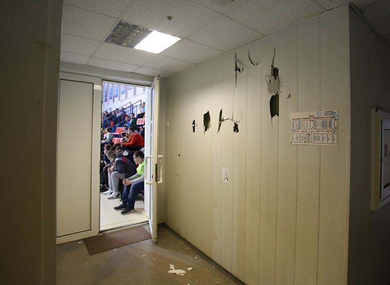 Центровий розбив руки об стіну спорткомплексу «Надія».