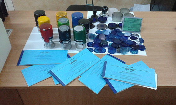 Під час проведення процесуальних дій працівники Управління захисту економіки вилучили фінансову документацію, печатки фіктивних товариств, чекові книжки, чорнові записи, де вказані суми грошових коштів та клієнти, яким надавались послуги.