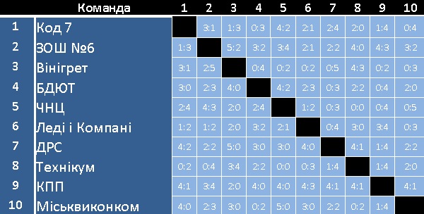 ДРС, хоч і без можливості вибороти першість, тріумфували з таким самим рахунком, аби зняти всі питання у долі другого місця. Таким чином останній поєдинок для освітян перетворився на формальність. Вони, в свою чергу, не дозволили студентам Технікуму набрати хоча б одне зайве очко, залишивши їх на останньому місці