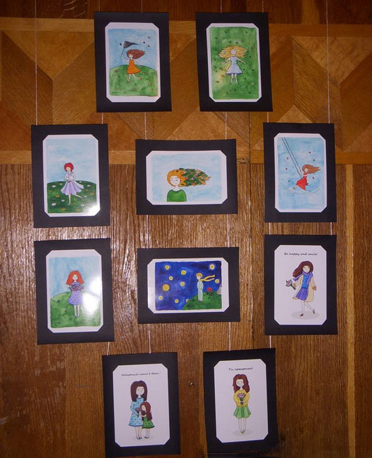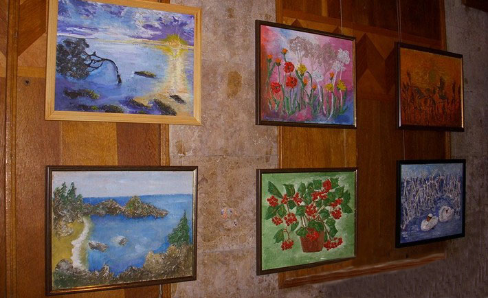 Серед близько 50 мистецьких творів не лише картини, а й афіші до вистав, зроблені на замовлення Черкаського музично-драматичного театру ім. Т. Шевченка, авторами яких є Зачепа Анастасія та Компанієць Владислав. Вразять глядача також надзвичайно щирі і світлі картини у вигляді поштових листівок від молодої і талановитої Катерини Муренко.