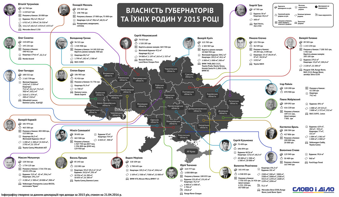 У той час, на рахунку у банках Юрій Ткаченко має 180 тис грн. Також губернатор задекларував будинок площею 231, 45 кв. м., квартиру площею 76,7 кв. м. і дві земельні ділянки площею 6 тис кв. м і 1 706 кв. м.
