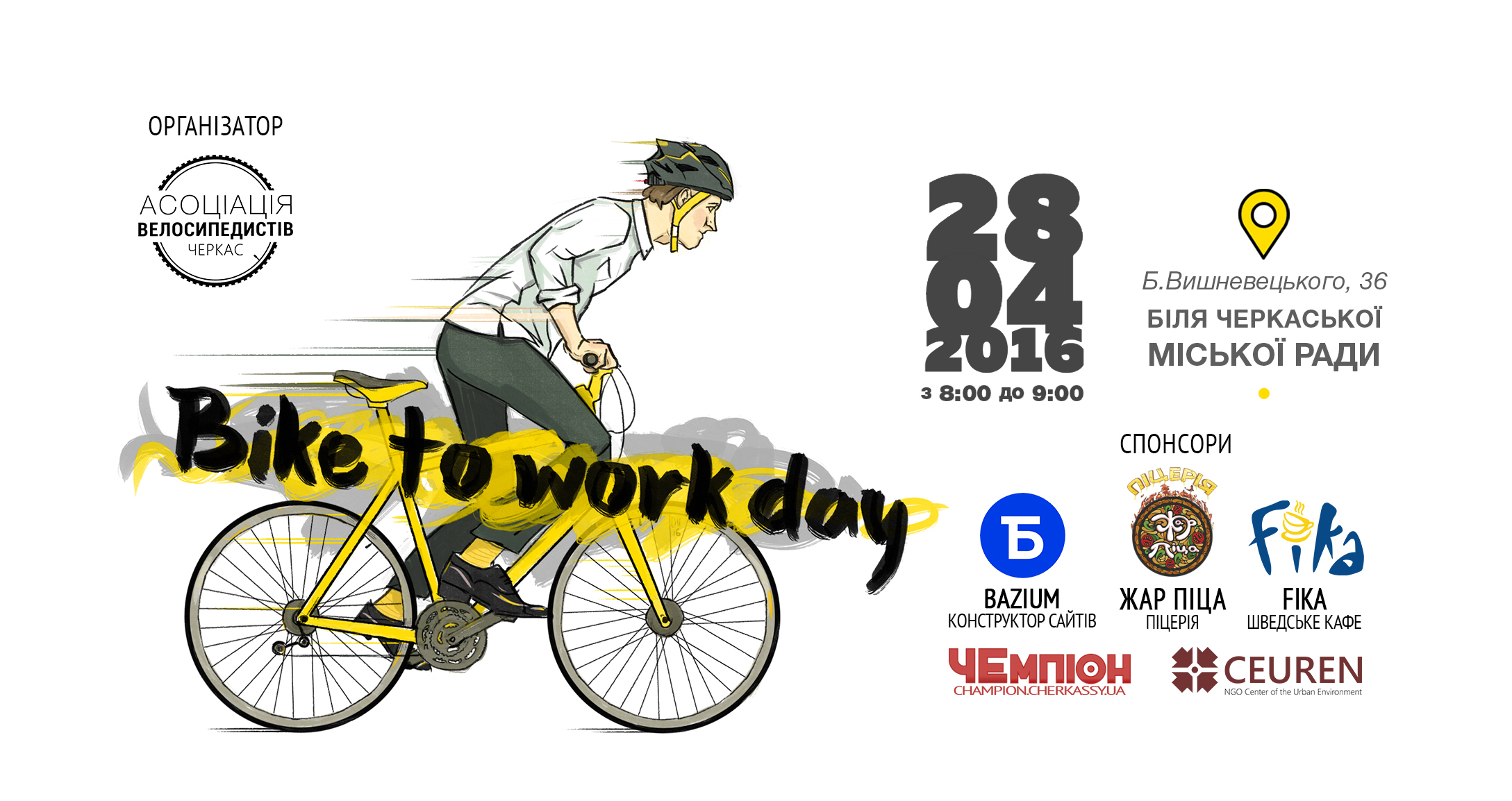 «День Велосипедом на роботу» – це захід, який популяризує велосипед як щоденний транспорт та звертає увагу на необхідність створення умов на робочих місцях для тих, хто обирає цей спосіб пересування містом,спонукає міську владудо розвитку вело інфраструктури.
