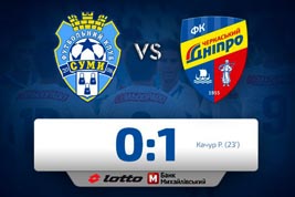 Поступово приїжджа команда вміло перебрала на себе важелі впливу на хід поєдинку – і результат не змусив себе довго чекати. У середині першого тайму черкащани організували розмашисту атаку, результативний підсумок у якій поставив Руслан Качур, замкнувши простріл Володимира Шопіна. Натомість перед перервою півзахисник сумчан Дмитро Олійник, перебуваючи у вигідній позиції, не зміг переграти Кучинського.