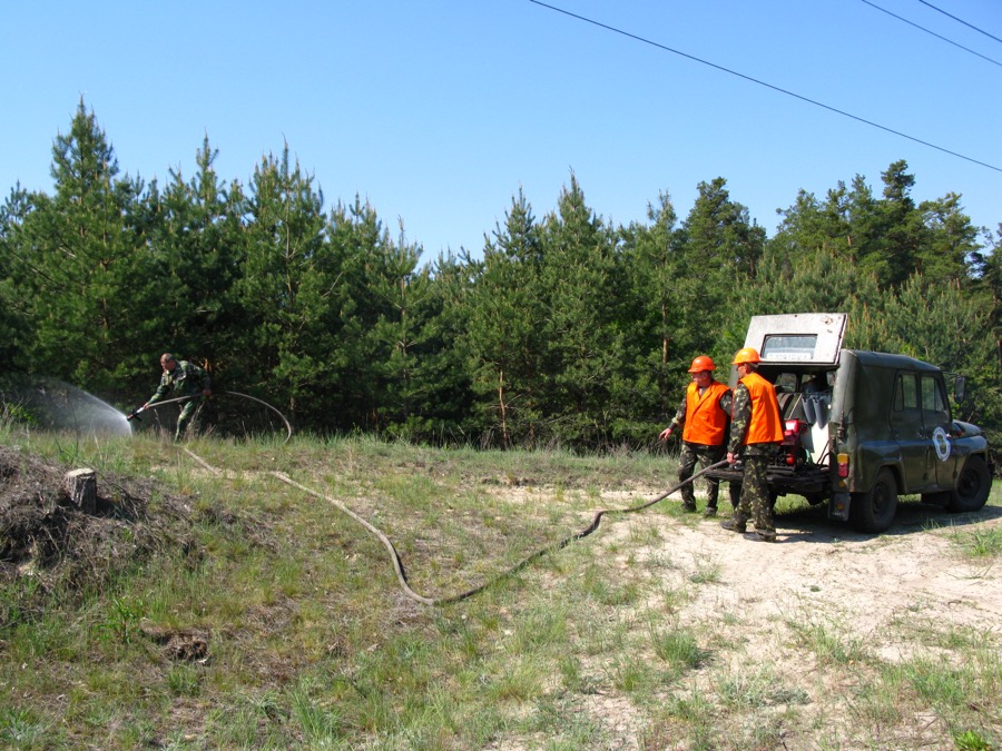 У Черкаському лісгоспі на пожежонебезпечних ділянках у спекотну погоду можна часто помітити лісові автомобілі, деякі з причіпами. Це чергує лісова охорона з протипожежними модулями. Такі автономні установки мають свою помпу і невелику кількість води, зазвичай, близько тонни. У випадку невеликого загорання цього достатньо, щоб загасити вогонь або навіть локалізувати невелику пожежу.