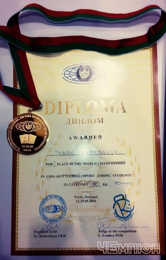 Студент Уманського гуманітарно-педагогічного коледжу ім.Т.Г.Шевченка, майстер спорту України Олександр Ткач переміг на чемпіонаті світу з гирьового спорту серед студентів, пише "Чемпіон".