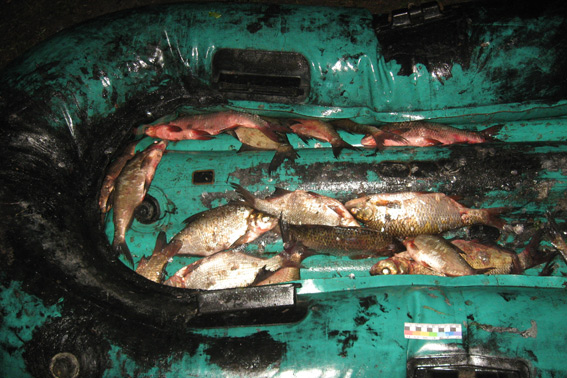 У браконьєра поліцейські вилучили 22 рибини, серед яких було 12 лящів, 6 пліток, 2 карася та 2 густери на суму близько 2700 гривень. Зі слів зловмисника стало відомо, що він ловив рибу для власного вжитку сіткою.