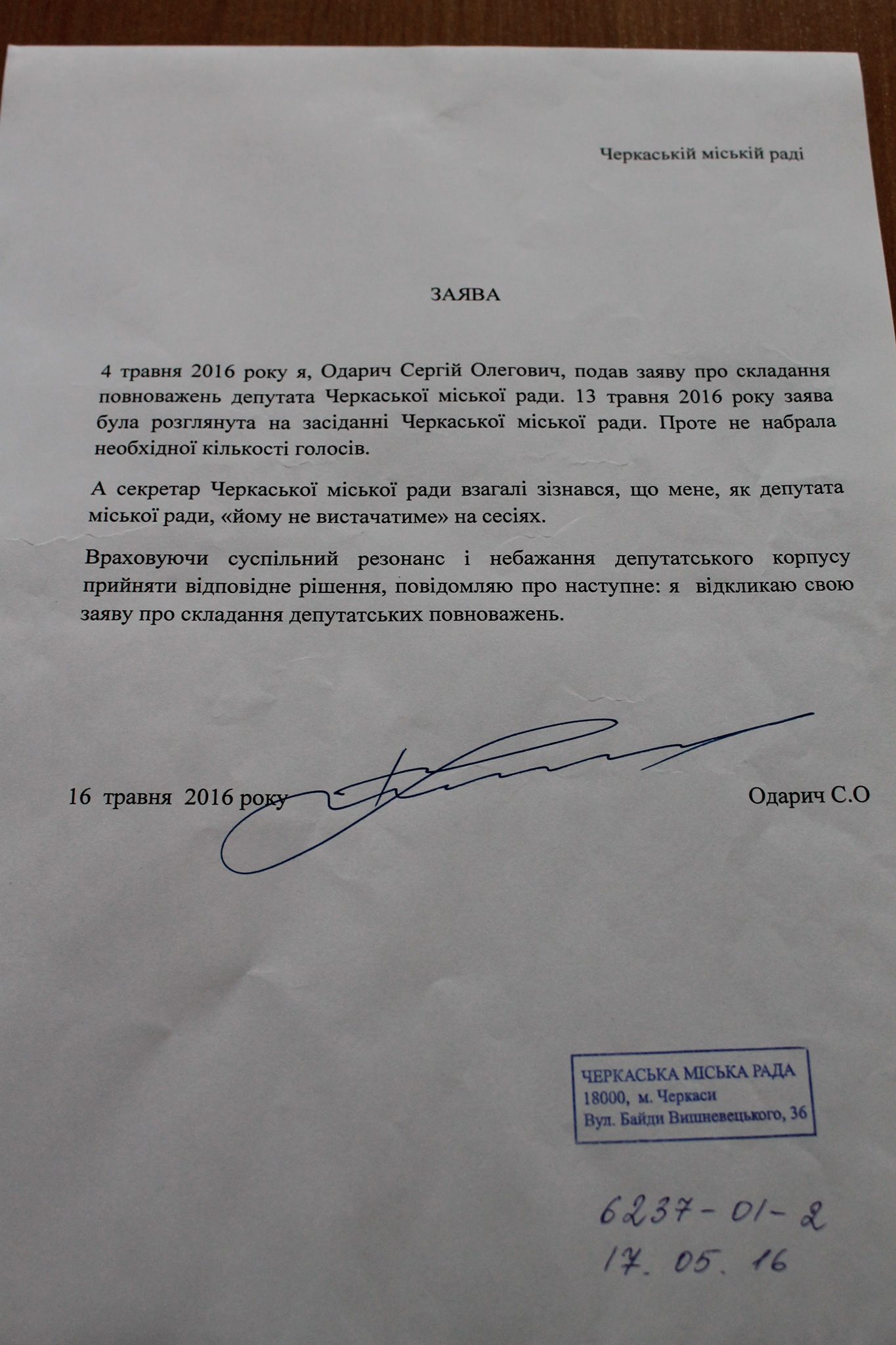 Нагадаємо, раніше він подавав заяву про складання депутатських повноважень, проте депутати його не відпустили. І Сергій Одарич вирішив попрацювати ще.