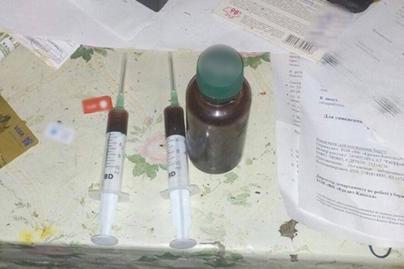 По всій території вказаного домоволодіння, на вулиці, в приміщенні літньої кухні працівниками поліції було виявлено шприци із залишками речовини коричневого кольору. В приміщенні будинку в одній із кімнат було виявлено два шприци та пластмасову ємність які були заповнені рідиною темно бурого кольору. Усі предмети були вилучені працівниками поліції та направлені для проведення експертно-криміналістичного дослідження. У спілкуванні із слідчим чоловік повідомив, що вказану речовину зберігав для власного споживання. Правоохоронці встановлюють походження даних наркотиків.