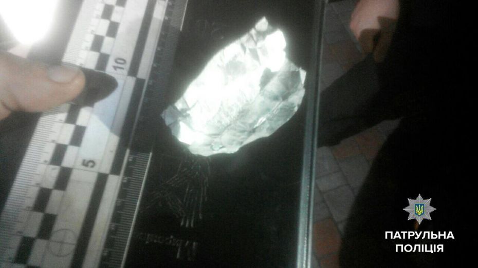 Інший екіпаж, в районі Митниця, на зупинці помітив компанію із трьох молодиків, які поводили себе підозріло. Інспектори вирішили перевірити даних осіб. Під час здійснення огляду у одного з них було виявлено порошок білого кольору (попередньо амфетамін). На місце викликали слідчих.