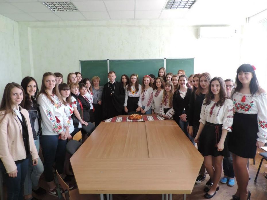Студентам 1-го курсу навчально-наукового інституту української філології та соціальних комунікацій священик прочитав лекцію на тему: «Життя, місіонерська і просвітницька діяльність святих рівноапостольних Кирила і Мефодія, вчителів слов’янських». Студенти задавали питання, які їх хвилюють, спілкувалися на тему морального і духовного виховання людини, якою повинна бути поведінка справжнього християнина у сучасному світі на основі Святого Письма. Діалог священика і молоді триватиме й надалі.