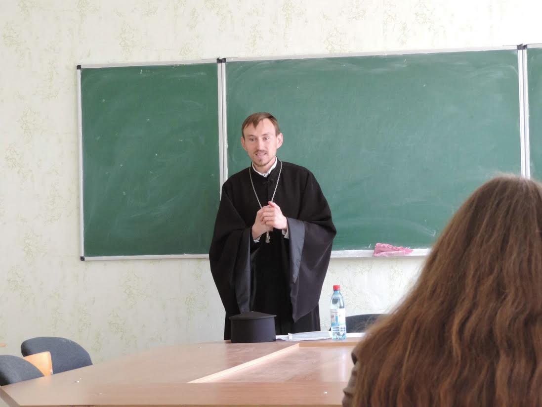 На запрошення викладачів Черкаського національного університету ім. Богдана Хмельницького настоятель храму Святих рівноапостольних Кирила і Мефодія УПЦ (Київського патріархату) ієрей Володимир Штокало провів зустріч зі студентами вишу.