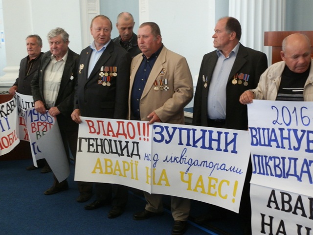 - Це акція ліквідаторів, постраждалих від чорнобильської катастрофи. Ми зібрались, бо не виконуються закони. Приміром, скасовані наші пільги на газ, на світло, не виконуються рішення навіть Європейського суду. Якщо я відсудив тисячу євро, мені їх ніхто не виплачує. Наша вимога, щоб це питання розглянули на сесії і підтримали наше звернення до Президента і Премєр- міністра, - розповів представник Монастерищинської спілки інвалідів-чорнобильців Валерій Ротарь.