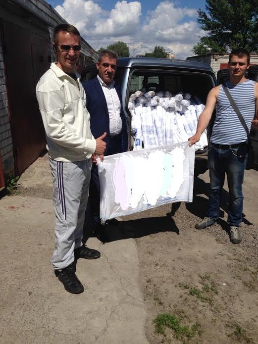 Так, тільки за останні два тижні вже двічі представники об’єднання відвезли на передову продукти харчування, зібрані Центром забезпечення військових у зоні АТО, смаколики, приготовлені дбайливими руками дівчат зі «Смачної сотні», дві тисячі мішків для спорудження укріплень, передані приватним підприємцем Мелконяном Агароном Коляєвичем. Приємним подарунком для «айдарівців» став також привезений ветеранами оптичний приціл.