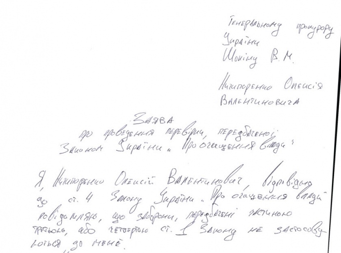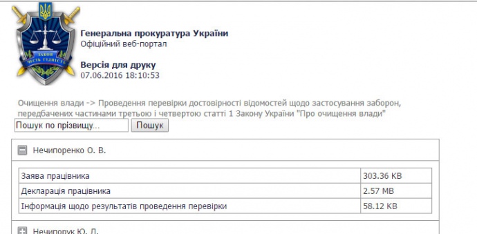 Згідно з даними ГПУ, Ничипоренко проходив люстраційну перевірку. У документах, які він заповнював, він вказаний як Ничипоренко, однак у висновку комісії з перевірки, який є в пакеті документів, він значиться, як Нечипоренко.