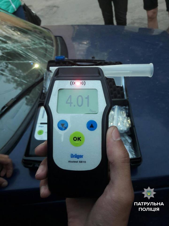 Екіпаж послідував за ним. За кілька хвилин легковика наздогнали та зупинили. Поспілкувавшись з водієм, патрульні запропонували йому пройти тест на освідування. Результат алкотестеру виявився позитивним – 4.01 проміле, що у 20 разів перевищує норму.