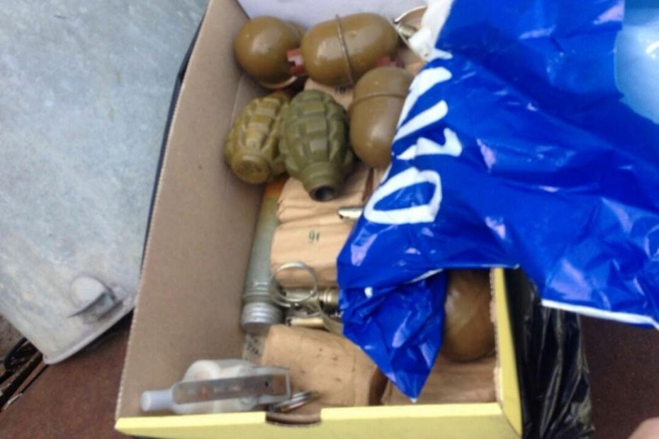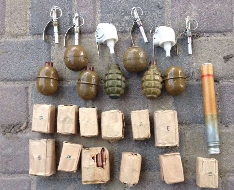 Під час обшуків за місцем проживання торгівців співробітники спецслужби вилучили дві протипіхотні міни, сім гранат РГД-5, Ф-1 і РГО, два пістолети та майже п’ятсот набоїв різного калібру.