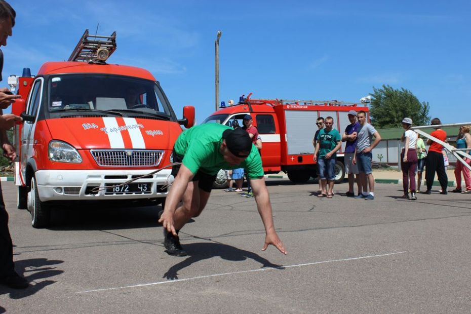 Після такої розминки, наступив час «Надзвичайної ситуації», або як жартують учасники, - «біг по колу». За правилами, чотири атлети, неначе естафетну паличку переносять два газових балони загальною вагою 130 кілограмів. Перемогу святкує команда, яка зможе пронести цей нелегкий вантаж на довшу дистанцію.