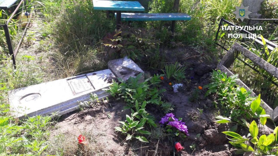 Коли патрульні прибули на місце виклику, на них вже чекала жінка, яка телефонувала до чергової частини. Черкащанка є донькою покійного, вона майже щодня навідується до могили батька. Коли вкотре прийшла, то побачила неприємну картину. Пам`ятник лежав зруйнований на землі, а металева огорожа — зникла. Хто незаконно заволодів предметами, що знаходились на могилі — ніхто не бачив. Патрульні викликали слідчо-оперативну групу і відібрали пояснення та заяву у громадянки. До приїзду слідчих, інспектори забезпечили охорону місця події, а потім передали матеріали справи.