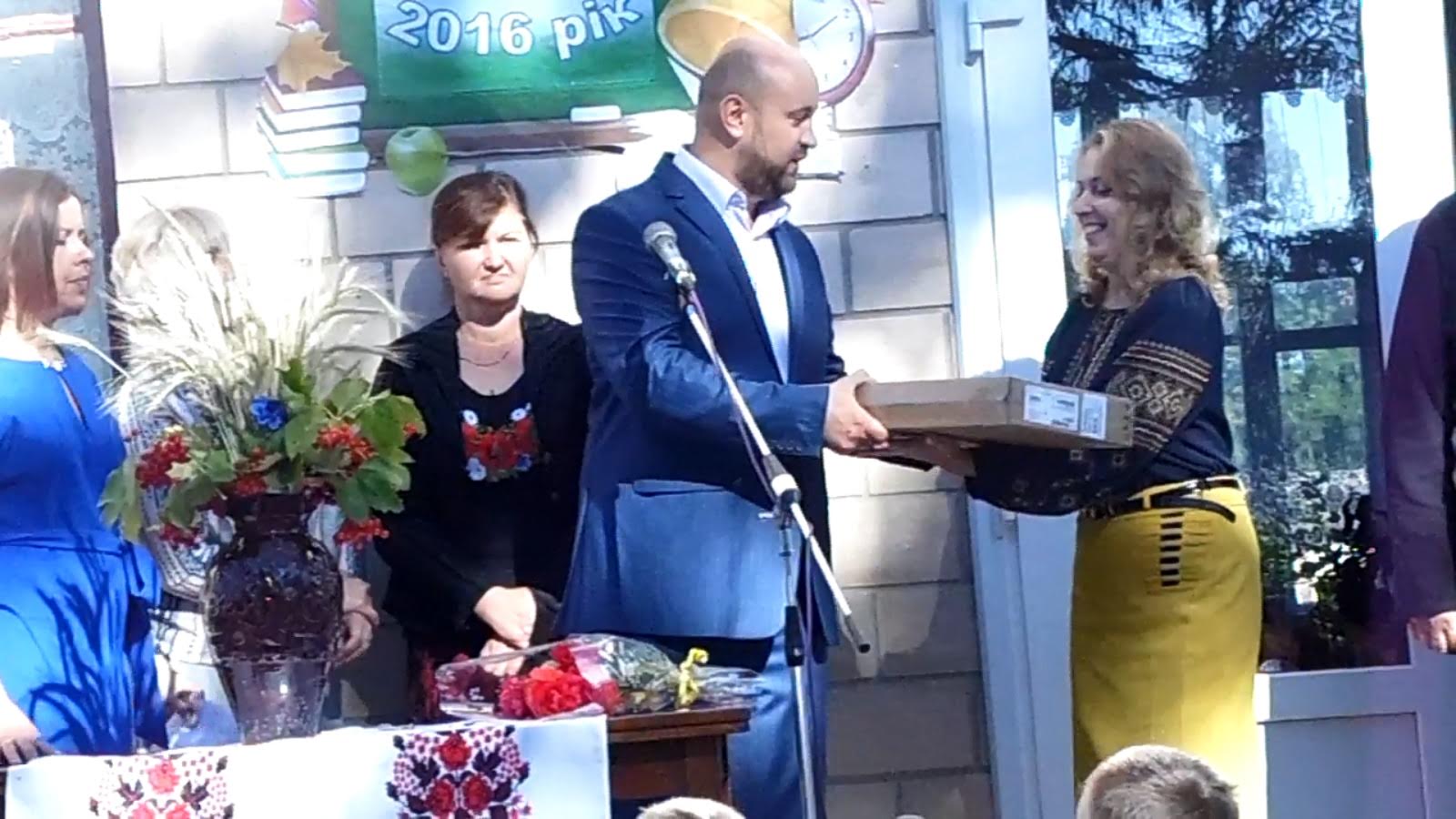 Від імені керівництва СТОВ «Дніпро» Григорій Петрович побажав учням успіхів у навчанні, наголосивши, що саме від них залежатиме майбутнє нашої молодої держави, а родина Душейків завжди буде підставляти плече допомоги у вирішенні тих питань, які виникають перед школою. І на підтвердження цього на урочистій лінійці подарував ноутбук.
