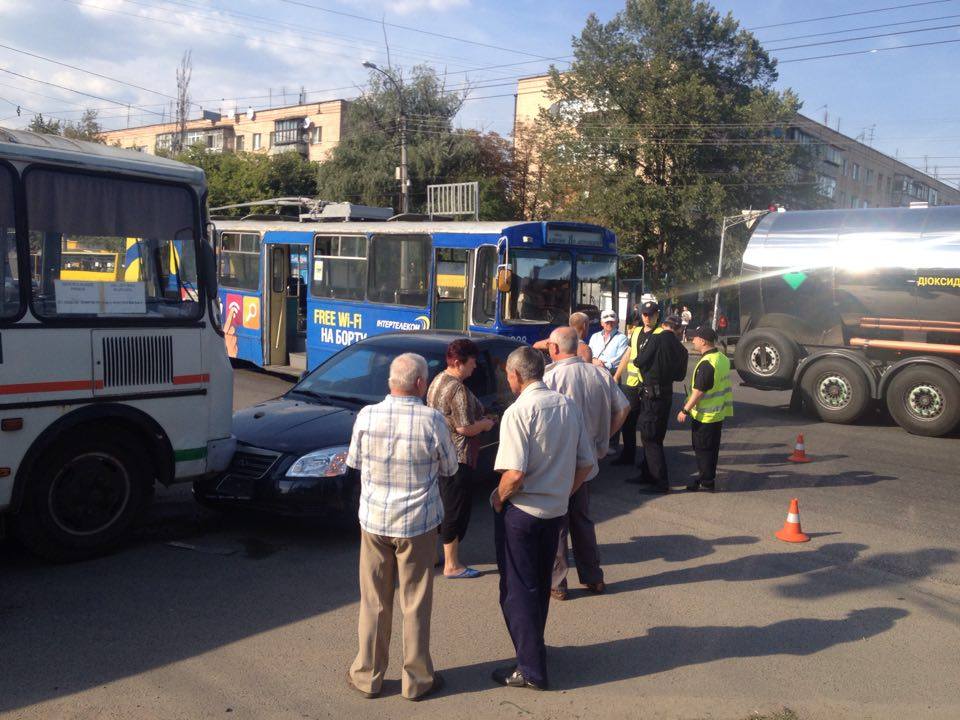На розі вулиць Самійла Кішки і проспекту Хіміків сталося ДТП за участі автобуса №9 і «Чері Амулет».