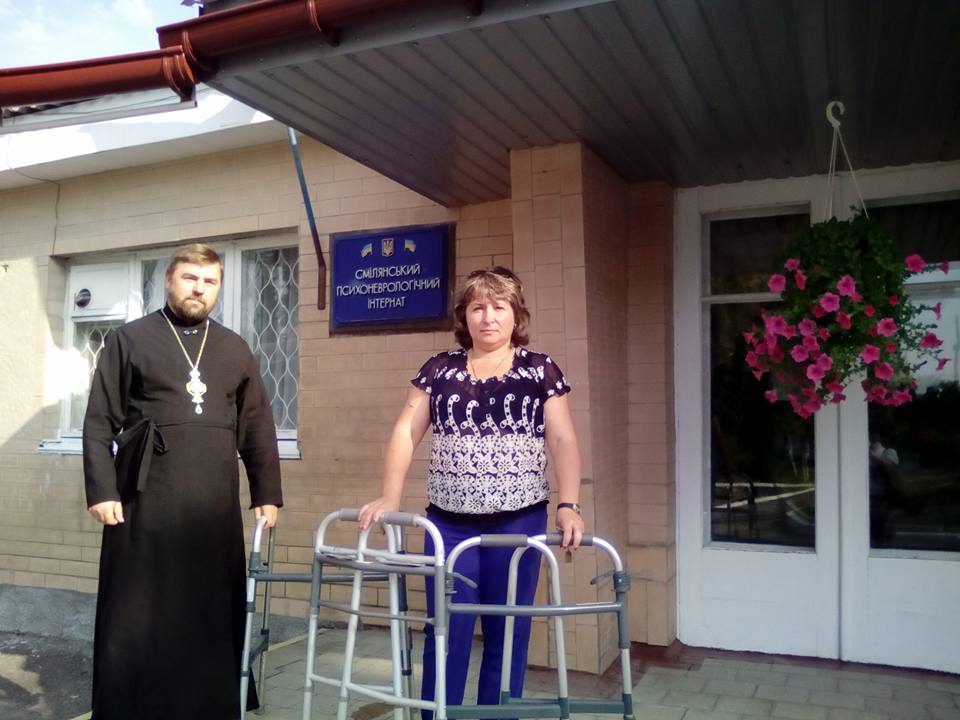 Від імені парафії Різдва Святого Іоана Хрестителя Української Автокефальної Православної Церкви настоятель храму митрофорний протоієрей Михайло Шевчук передав ходунки немічним Смілянського психоневрологічного інтернату.