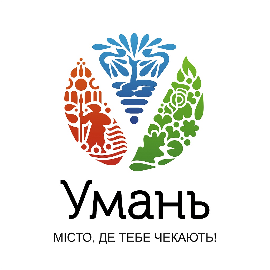 Логотип Умані складається із зображення стилізованих секторів різного кольору, які між собою утворюють першу літеру назви міста Умань та символізують наступне: