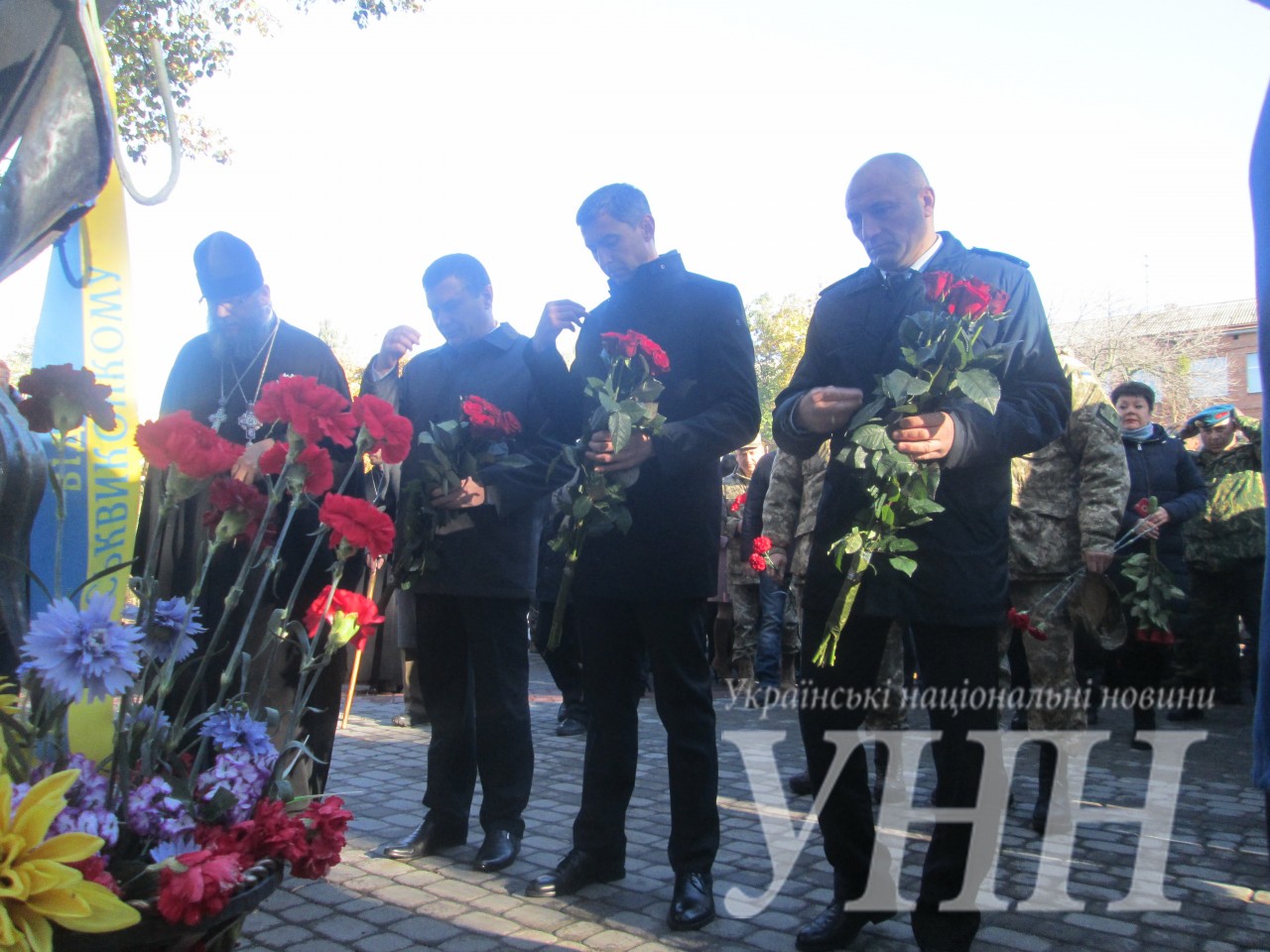 Чисельну колону черкащан, яка вирушила з Соборної площі, очолили курсанти-рятувальники з 25 портретами загиблих на Сході черкасців. Під музику військового оркестру колона прокрокувала до пам’ятника воїнам-інтренаціоналістам, де також поклали квіти. Далі колона зупинилась вже біля стели Борцям за волю України всіх часів. Урочистості продовжились на майдані біля Свято-Троїцького собору. Усіх загиблих в АТО черкащан (а їх на сьогодні 142, за словами голови Черкаської ОДА Юрія Ткаченка) пом’янули хвилиною мовчання. А живим учасникам АТО та волонтерам вручили почесні відзнаки та грамоти.