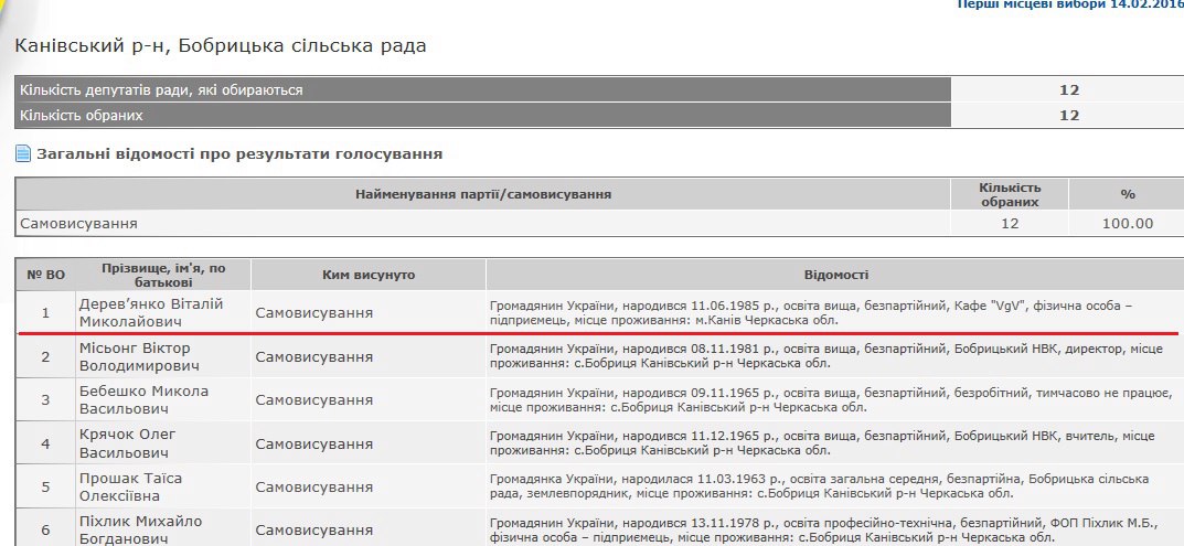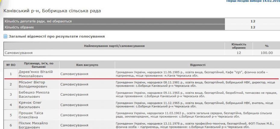 Зауважимо, що Віталій Миколайович Дерев'янко був обраний на місцевих виборах 2015-го року депутатом Бобрицької сільської ради.