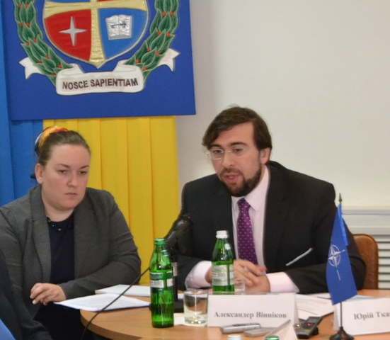 Зокрема, Голова Представництва НАТО в Україні, директор Офісу зв’язку НАТО в Україні Александер Вінніков говорив про російську агресію в Україні та засоби боротьби з нею.