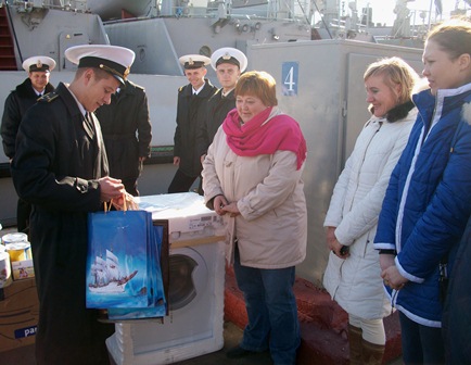 Весело й швидко розвантажили подарунки. Нова сучасна пральна машина, повне обладнання для санвузла, фарба, продукти харчування, канцелярське приладдя, сувенірна продукція Сміли – якраз те, що замовляли моряки раніше.