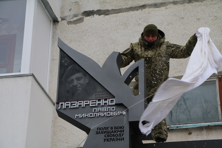 У Черкасах відкрили меморіальну дошку загиблому під час служби в зоні проведення АТО Павлу Лазаренку. Пам’ятний знак на честь військового, життя якого обірвалося в 40-річному віці, встановили на будинку, де він проживав – на вулиці Героїв Майдану, 9 (колишня – Гайдара). На сході чоловік служив водієм. Потрапив туди добровольцем-прикордонником.
