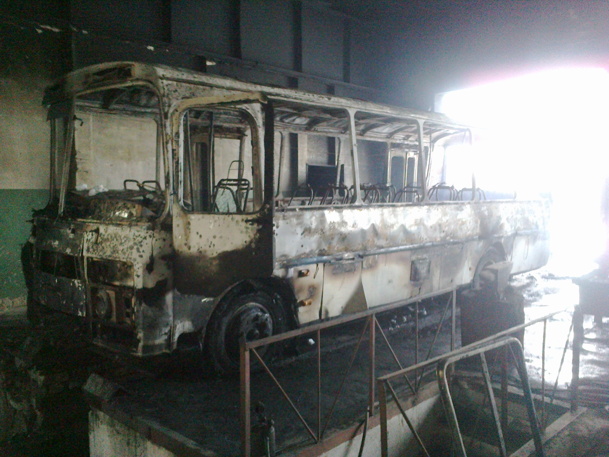 Водій за допомогою паяльної лампи намагався розігріти мастило аби полегшити процес запуску двигуна, встановивши пристрій він на декілька хвилин відійшов у власних справах. Коли чоловік повернувся, то побачив, що від паяльної лампи загорівся двигун, а вогонь загрожує поширитися ще й на салон автобуса. Намагаючись впоратися із вогнем за допомогою вогнегасника водій втратив час, а коли на місце події прибули рятувальники вогонь вже встиг охопити увесь транспортний засіб.