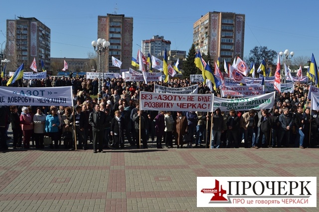 - Ви забезпечуєте роботою черкаський бізнес, «Черкасигаз», «Черкасиобленерго». Закриття такого підприємства відкине нас на 50 років назад. Це є війна 21 століття. Отак вона відбувається, коли без бомб, без літаків знищують найбільше підприємство області. Знищують за допомогою хабарів. Без хабарів завести в Україну десятки-сотні тисяч тон мінеральних добрив неможливо. Ми ж не ідіоти, ми чудово розуміємо, хто ці хабарі бере., - сказав Карась під оплески мітингувлаьників.